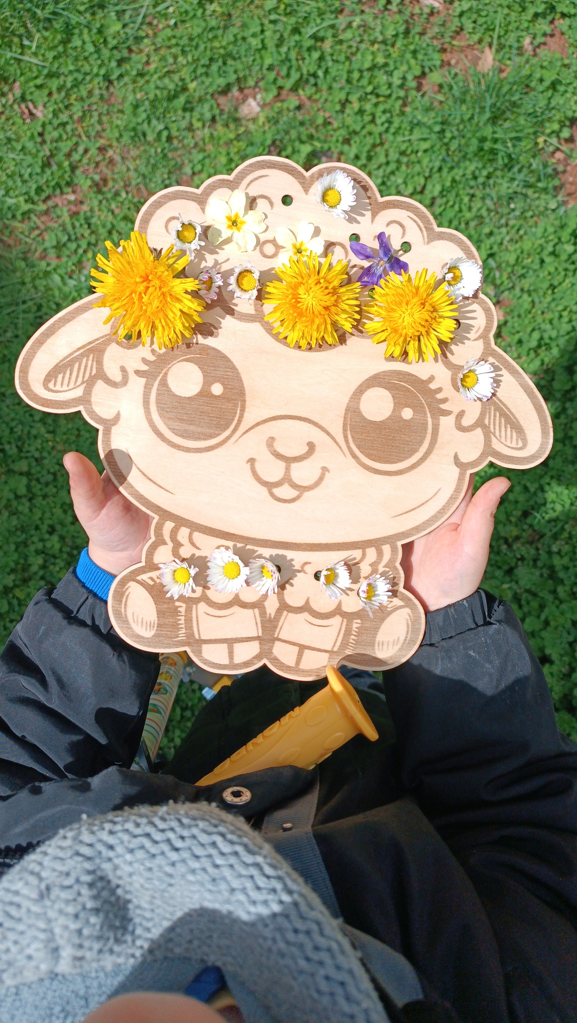 Une brebis artisanale pensée pour éveiller la créativité des enfants ! Grâce aux trous dans le bois, ils peuvent y glisser fleurs naturelles ou séchées, créer des compositions colorées et s’amuser tout en développant leur imagination.