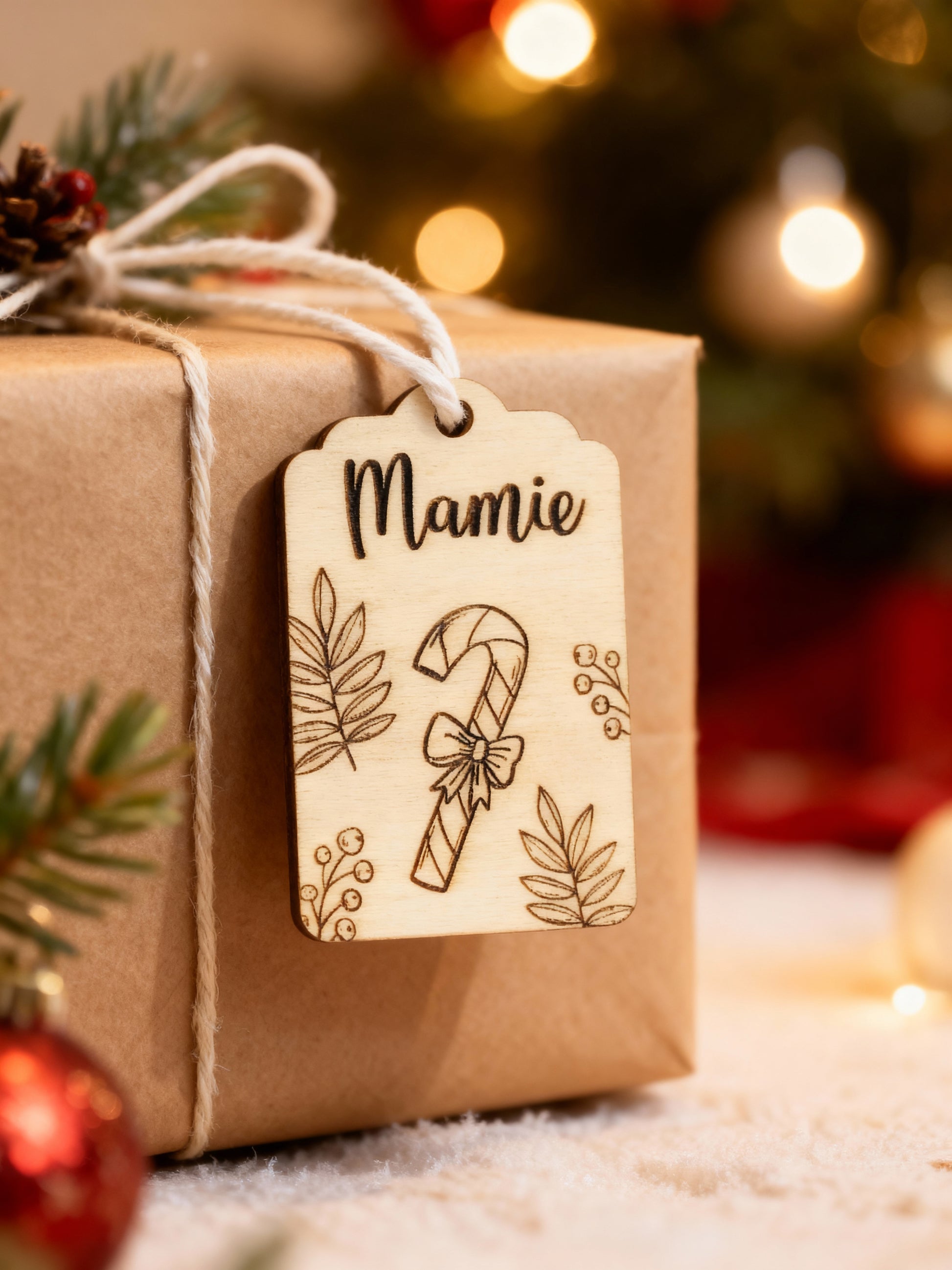 Apportez une touche unique à vos cadeaux de Noël avec cette élégante étiquette en bois. Personnalisable avec un prénom, elle ajoute un détail raffiné et chaleureux qui embellira votre emballage tout en rendant chaque présent vraiment personnel.