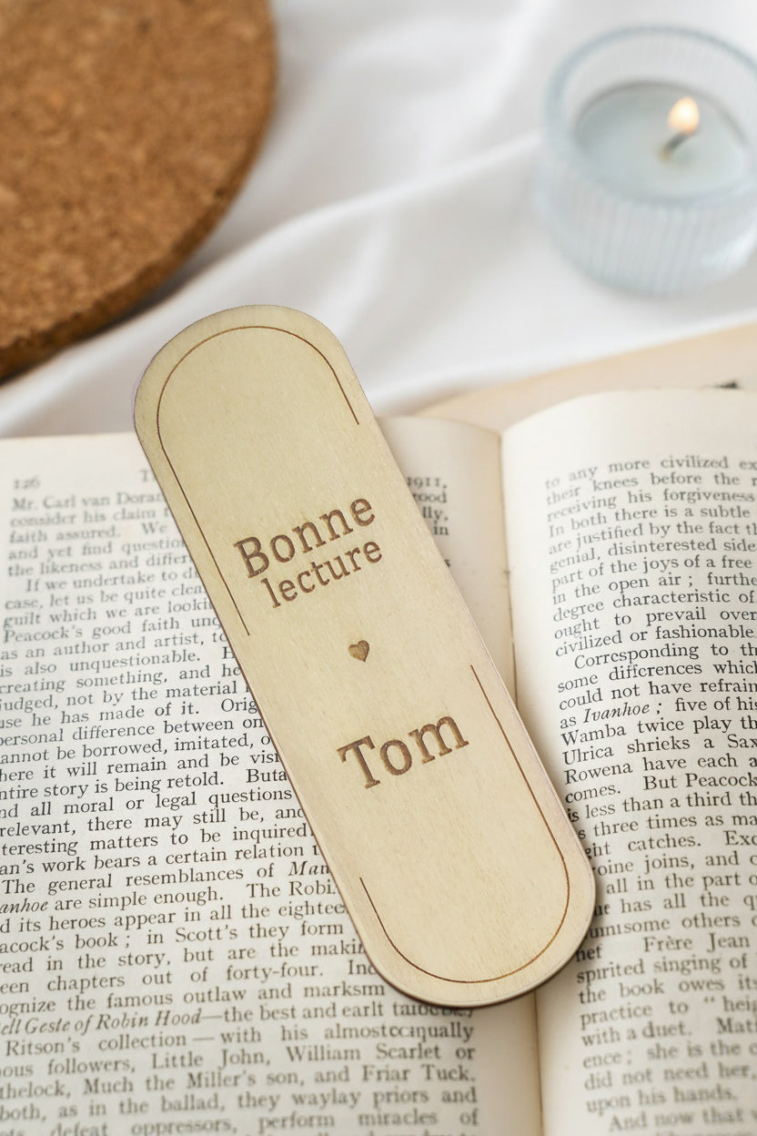 Ce marque-page en bois naturel allie simplicité et élégance, offrant une finition chaleureuse parfaite pour sublimer vos lectures. Personnalisable avec le prénom de votre choix, il devient un accessoire unique et personnel, idéal pour les amateurs de livres souhaitant une touche d’authenticité et de raffinement.